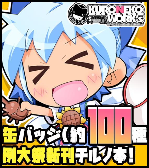 サークル説明 チルノ4コマ本、電子書籍(見本) 東方缶バッジ(約100種+α)