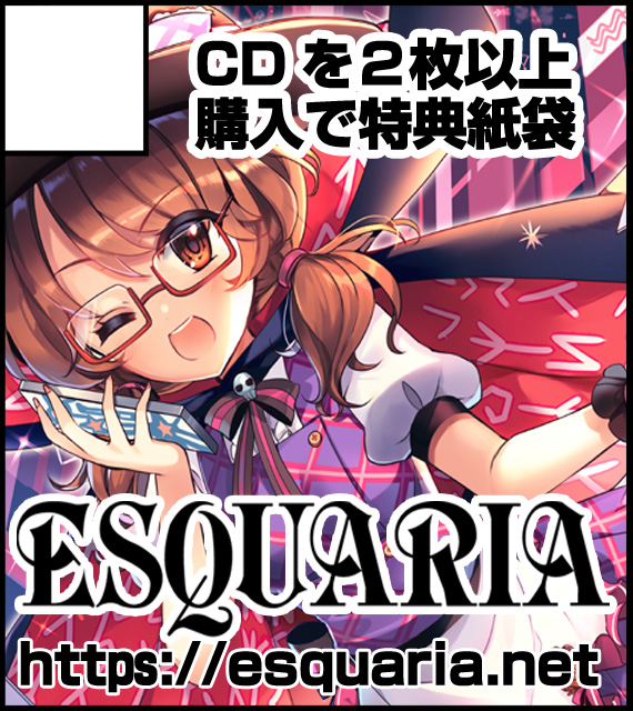 活動5周年を祝して初のベストアルバムを持って行きます。音楽ジャンルはハードコアとEDMを収録します。CDの仕様はジュエルケースでジャケットイラストはこいしちゃんとフランちゃんです。頒布価格はCD2枚組全40曲収録で2,000円です。会場限定の新譜セット(新譜+特典CD+クリアファイル)も持って行けたらと思っております