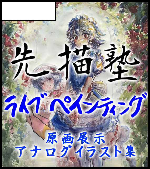 サークル説明 油彩画、水彩画などのアナログイラスト画集 アナログイラストのグッズ アナログ原画 200号サイズのライブペインティング実施します。 今回は『妖精キャラ』をテーマに制作予定です