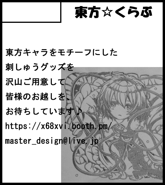 東方キャラをモチーフにした刺しゅうグッズです。