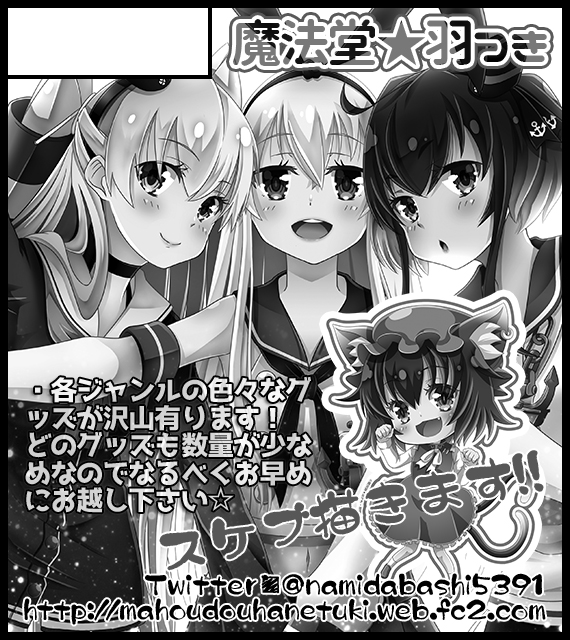 サークル説明 新刊:敷波のちょっとシリアスなお話 既刊:今までの即売会に出した本。ウマ娘と艦これ