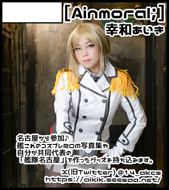 サークル説明 艦これのコスプレROM・ブロマイドセット、「連合艦隊名古屋へ!・札幌へ!」のイベントグッズ頒布とチラシ配布を行います。